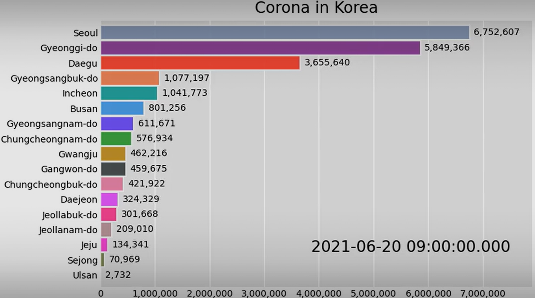 저번 게시물에 이어 OPEN API를 이용해 코로나 확진자 수를 bar_chart_race로 시각화 해 보겠습니다.
