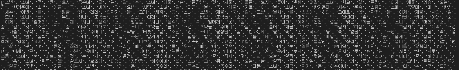 추후 단어 리스트로 분석한다면 아래와 같이 사용하시면 됩니다.