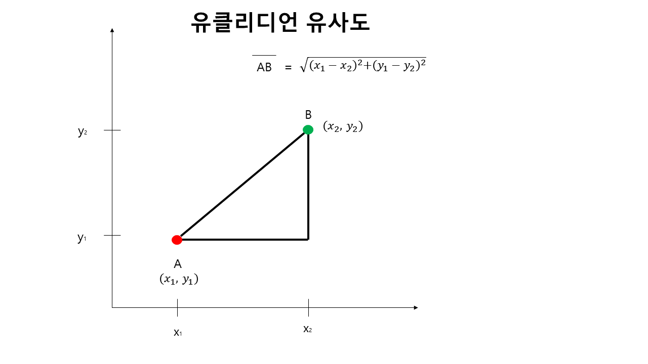 중고등학교 수학에서 배우는 좌표평면의 두 점 사이의 거리를 구하는 것을 '유클리디언 거리'라고 합니다.