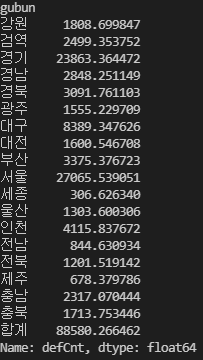 이렇게 지역별 합이 만들어졌습니다.