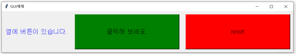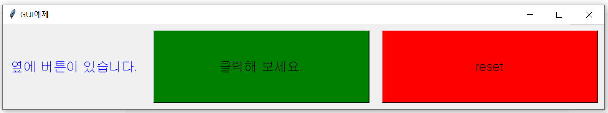label1=Label(tk, text='옆에 버튼이 있습니다.',fg='blue',font=20) # fg는 글자 색 지정, font로 글자 설정