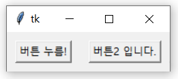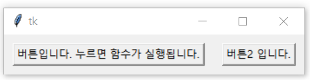 button = Button(tk,text='버튼입니다. 누르면 함수가 실행됩니다.',command=event)
