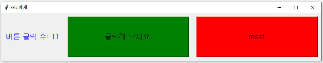 이번에는 버튼을 누르면 누른 횟수가 label로 표기되고 reset하여 지금까지 클릭한 횟수를 초기화하는 코드를 작성해 보겠습니다.