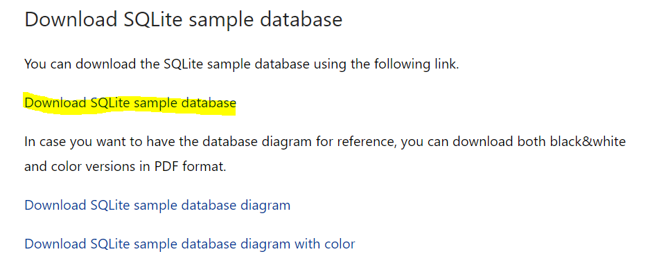 You can download a SQLite sample database and its diagram to practice with SQLite. You will also learn how to connect to the database using sqlite3 tool