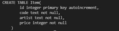 INSERT_SQL = 'INSERT INTO Item(code,artist,price) VALUES (?,?,?);'