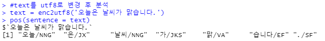 text = enc2utf8('오늘은 날씨가 맑습니다.')