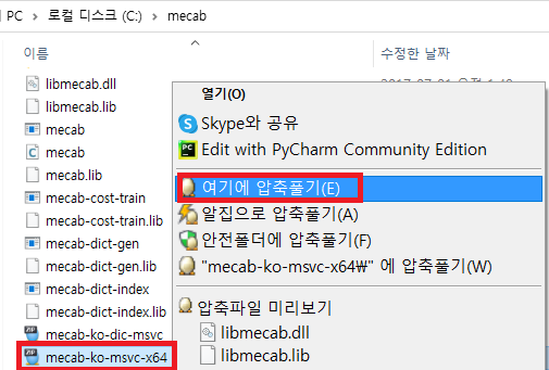 2. mecab-ko-msvc 설치 및 mecab 폴더에 압축해제