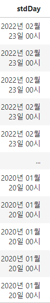 # stdDay열은 한글이 섞여 있으므로 한글 제거 후 datetime으로 변경