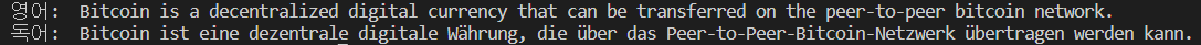 영어 입력문장은 위키피디아 비트코인 문서에서 가져온 문장을 사용하였습니다.