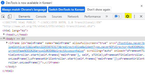 3. 우측 상단의 톱니바퀴 모양(설정) 누르기
