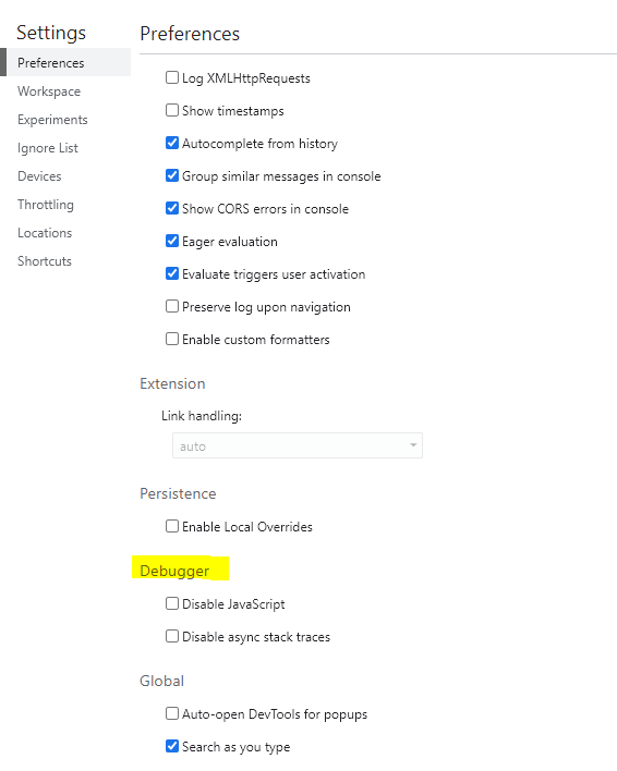 4. Settings의 Preferences 탭에서 아래로 쭉 내려 Debugger로 이동하기