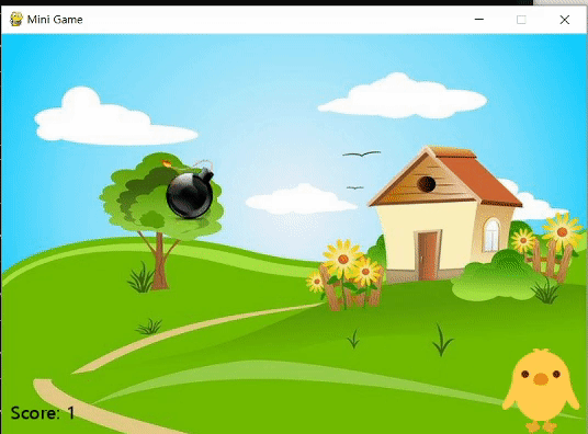 이 게임은 병아리가 폭탄을 피하고 부딪히면 게임이 종료되는 미니게임 입니다.