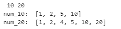 print('num_{}: '.format(i),a) #입력받은 약수 출력