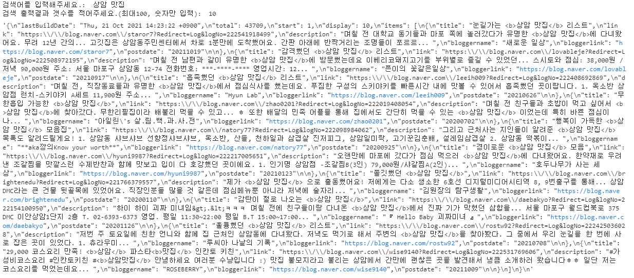 오늘은 네이버 API를 이용하여 블로그 제목 및 내용을 가져와봤는데요