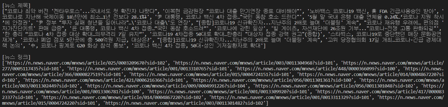 #html생성해서 기사크롤링하는 함수 만들기(url): 링크를 반환