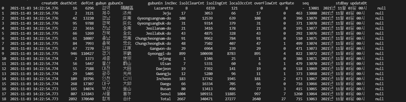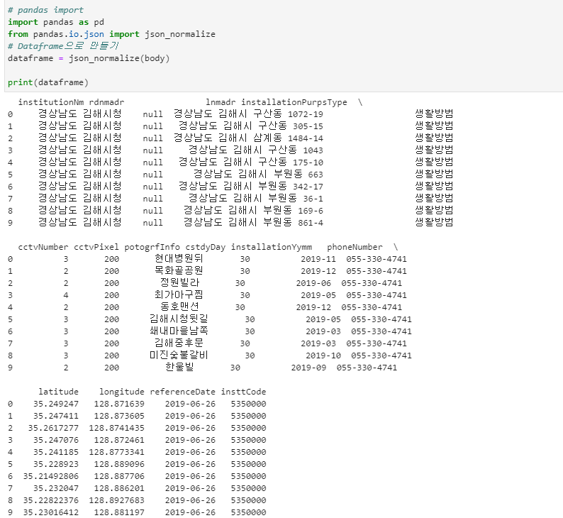깔끔하게 df로 만들어졌습니다. ㅎㅎ