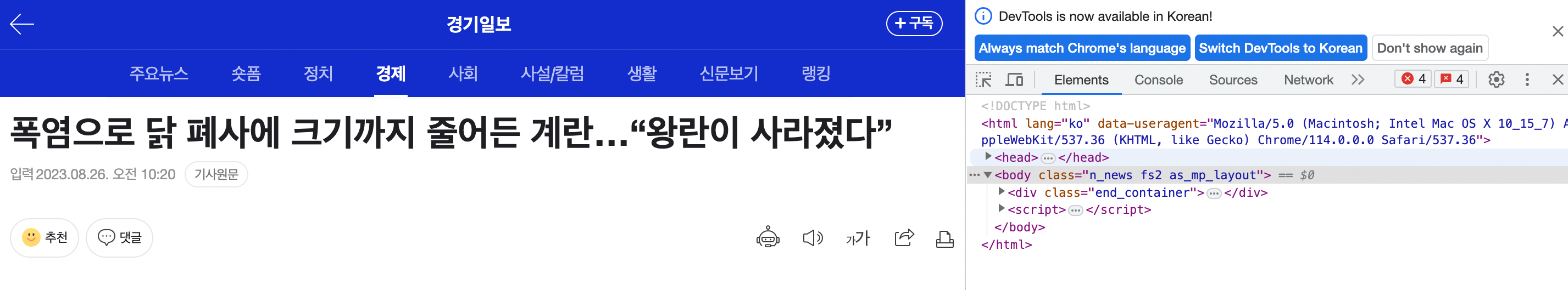 하지만 각각의 언론사는 다 다른 html 구조를 가지고 있기 때문에 정확하게 크롤링하려면 번거롭고 시간이 많이 듭니다.