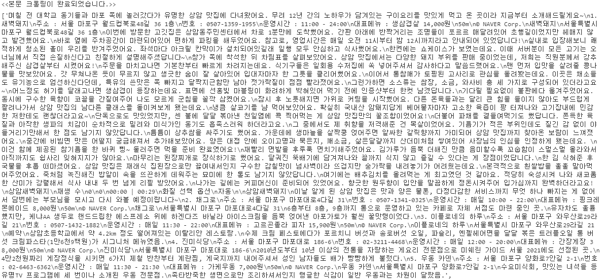 print("<<본문 크롤링이 완료되었습니다.>>")