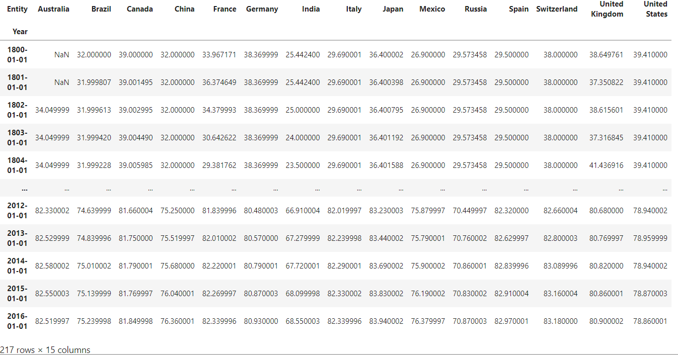 국가는 Austrailia(호주), Brazil(브라질), Canada(캐나다), China(중국), France(프랑스), Germany(독일), India(인도), Italy(이탈리아), Japan(일본), Mexico(멕시코), Russia(러시아), Spain(스페인), Switzerland(스위스), United Kingdom(영국), United States(미국) 이렇게 15개국이 있습니다.