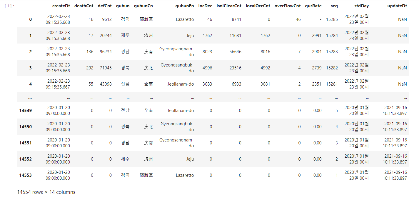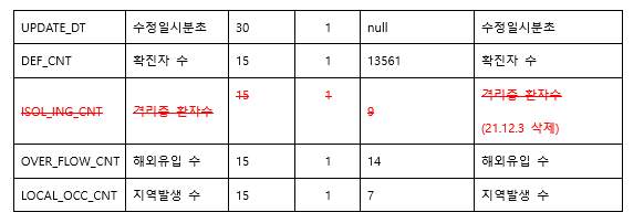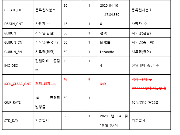 출처: 공공데이터 API 문서(코로나바이러스감염증_시도발생_현황조회서비스)